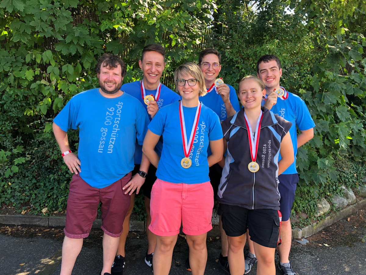 5 Schützen, (drei liegend und zwei in der Kniendposition) unter der Leitung von Christoph Strässle liessen sich die Goldmedaille umhängen.